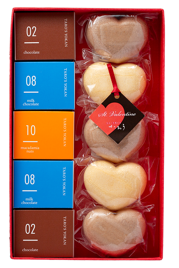 ようかん (chocolate2個、milk chocolate2個、macadamia nuts1個)ハートもなか(コーヒーミルク餡2個、キャラメル餡3個)